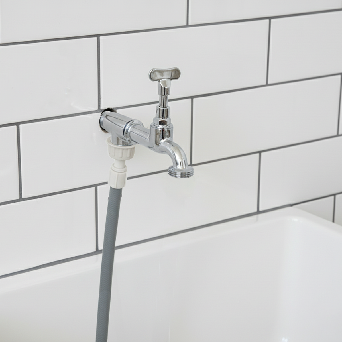 Seu design inteligente permite a conexão simultânea da torneira do tanque e da mangueira da máquina de lavar em um único ponto de saída de água. Graças ao seu design versátil, também pode ser aplicado em outras instalações hidráulicas conforme a necessidade do projeto.